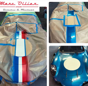 Mais plus je la regardais, plus l’inquiétude grandissait. Les restaurateurs français avaient déjà commencé à travailler sur la carrosserie. L’avant portait désormais les bandes tricolores françaises — peintes au lieu d’être appliquées! Le numéro 55 était également peint — techniquement parfait, mais pas authentique. La typographie ne correspondait pas à celle de 1968. Soudain, la voiture était liée à la peinture d’usine de 1968 sans que j’aie aucun contrôle.